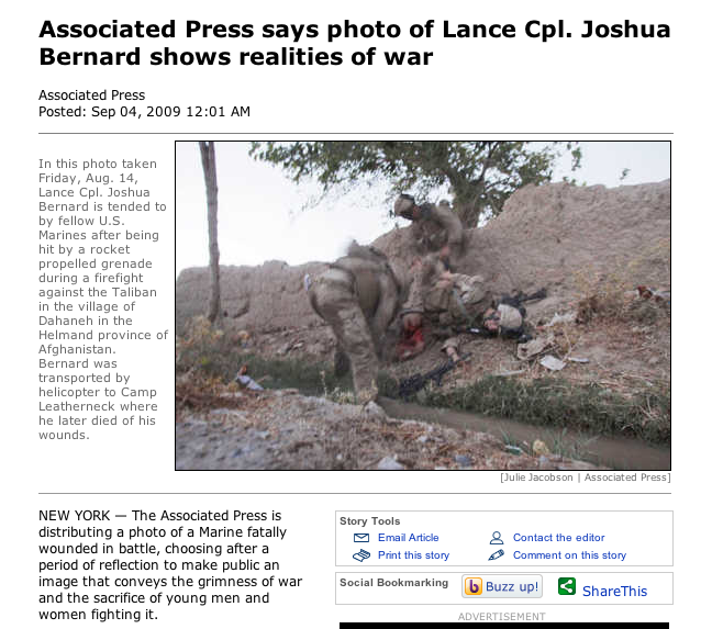 The Center For Bio-Ethical Reform (CBR) condemns the journalistic hypocrisy of the Associated Press (AP). The “disturbing” photo of a U.S. Marine dying in combat is not deemed too “disturbing“ for publication because the AP believes it is in the public interest to “convey the grimness of war and the sacrifice of the young men and women fighting in it.” The AP, however, has steadfastly refused to publish similarly disturbing photos of abortion. They apparently believe that it is in the public interest to suppress images depicting the “grimness “ of abortion and the “sacrifices” being made by the young boys and girls who are being slaughtered for the convenience of their parents. The AP publishes bloody photos of the war against the Taliban because they are anti-war. They censor bloody photos of the war against the unborn because they are pro-abortion. That is why they will publish this: